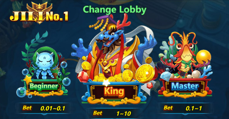 Fish shooting games at JILINo1 mainly differ in graphics and design. You can also choose the level such as Newbie (novice), Expert (expert), Caishen (god of fortune table for experts).
